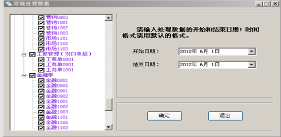 3、报表查询---处理数据---常规处理数据---选择所在院系-----选择需要处理数据的日期(此处与统计报表有关,相当于自动汇总数据)点击确认