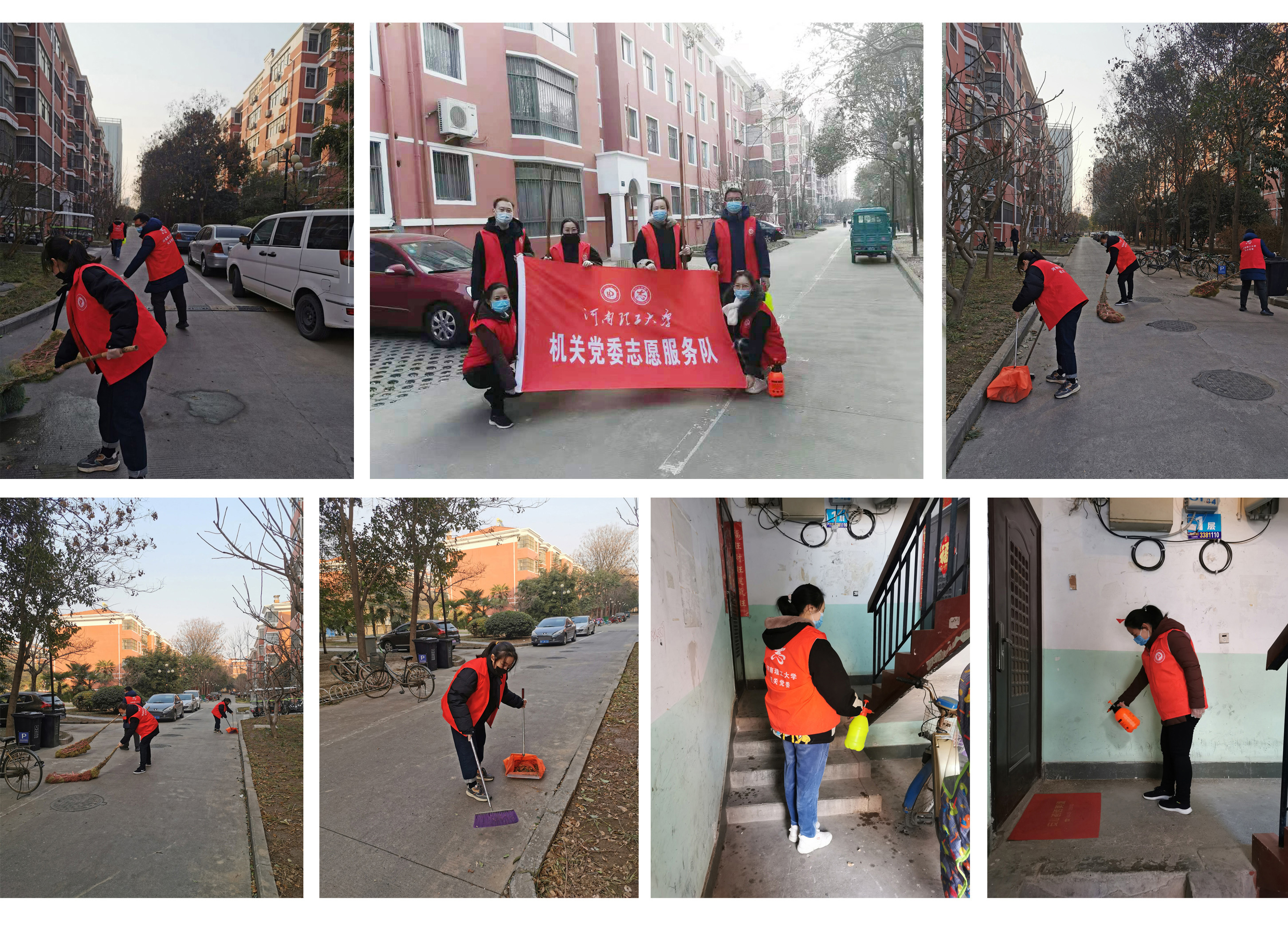 为贯彻“绿水青山就是金山银山”的生态文明理念,结合爱国卫生运动和寒假期间疫情防控需要,1月19日下午,财务处组织党员志愿者投身文明实践,来到滨河花园小区开展卫生清洁和消毒志愿服务活动。