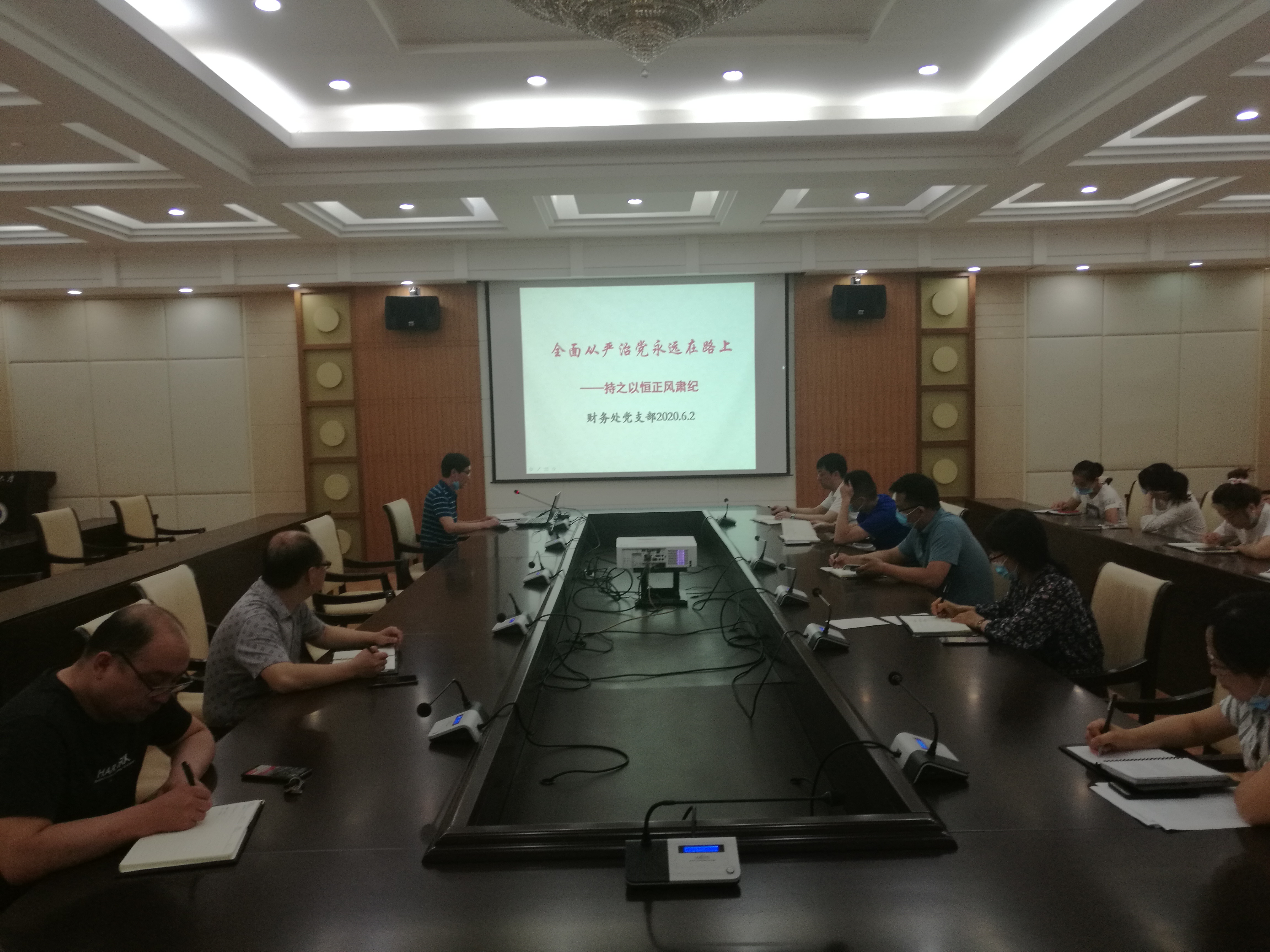 6月2日下午,财务处党支部在方形会议室召开专题报告会,财务处党支部书记王建华围绕我校2020年党风党纪教育月活动,作题为《全面从严治党永远在路上——持之以恒正风肃纪》的专题报告,财务处全体党员参加。
