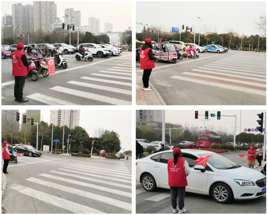 活动时间选在晚上下班高峰时间段,在文苑路与迎宾路交叉路口、韩愈路与迎宾路交叉路口,九名志愿者身穿红马甲,手持文明劝导小红旗,耐心劝导市民过马路走斑马线、遵守“红灯停、绿灯行”规则,劝阻闯红灯、机动车不礼让行人等不文明行为,帮助行动不便的行人过马路。在志愿者们的细心引导下,交通路口井然有序。