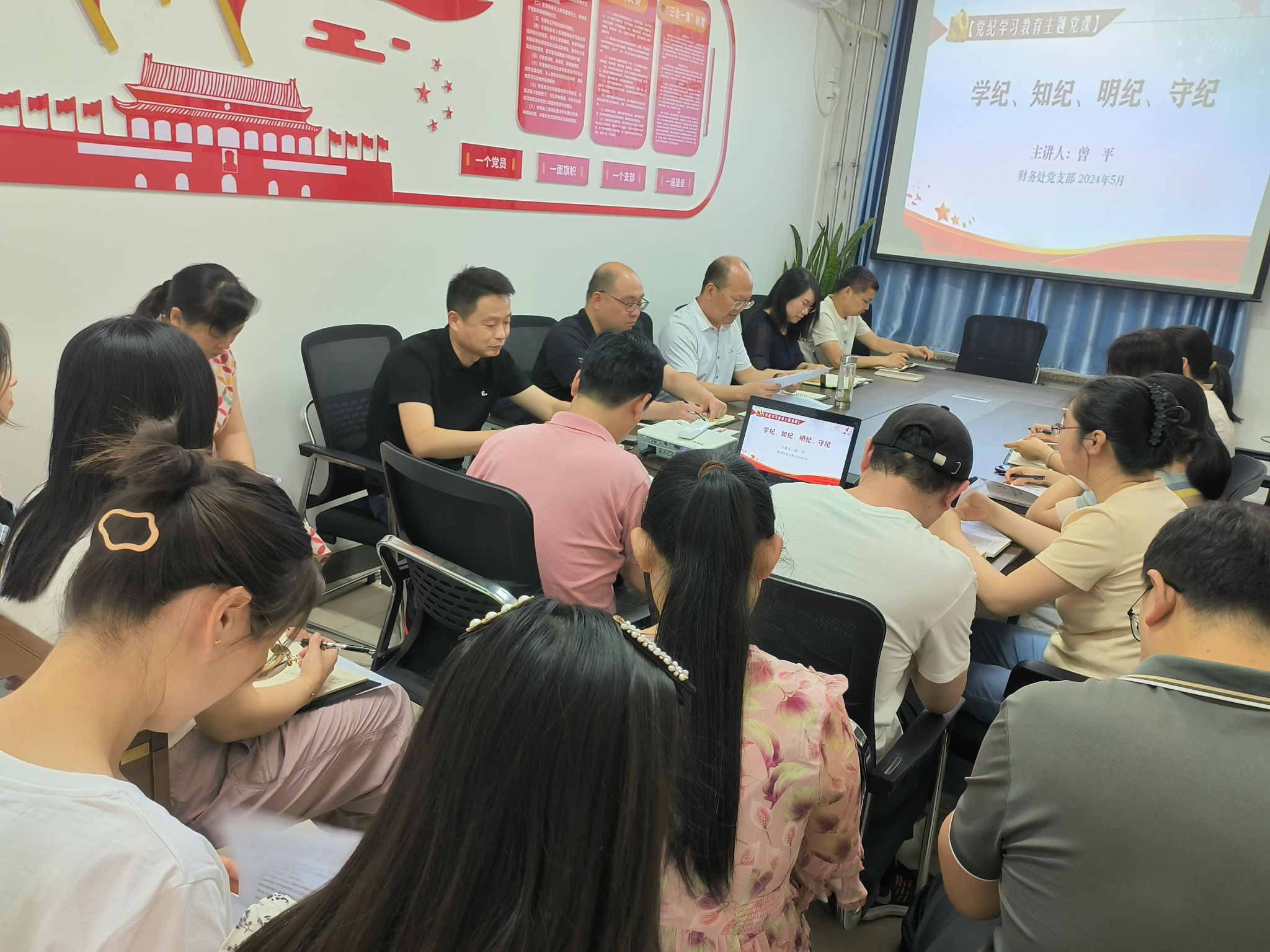 为推动党纪学习教育走深走实,引导党员干部强化廉洁自律意识,筑牢拒腐防变思想防线,5月28日下午,财务处党支部书记曾平为全体党员干部讲授党纪学习教育专题党课。