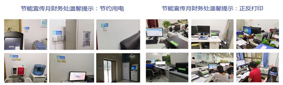 财务处首先将节能工作体现到了具体日常工作和生活中,通过在电脑前张贴“随手关电脑”、在照明灯开关上张贴“减少照明、节约用电”、在打印机上张贴“正反打印”等温馨提示语,进一步增强了教职工的资源危机意识和节能意识。