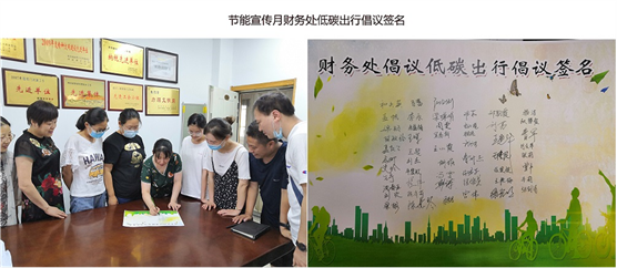 其次通过开展主题宣传活动、悬挂节能降耗宣传展板等方式,提高教职工的环保意识,让广大教职工养成良好的节能习惯。三是开展能源紧缺体验活动。财务处通过举行低碳出行倡议签名活动,号召全体教职工倡导低碳出行,一起乘坐公共交通工具、骑自行车或者步行上班。