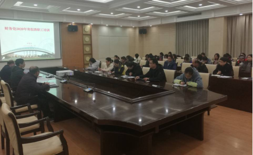 为加强财务人员业务交流,进一步强化业务素质、提升服务能力,1月13日下午,财务处在方形会议室召开2020年寒假工作会议并进行业务培训,财务处全体人员参加会议。