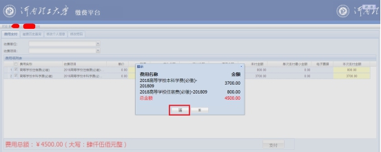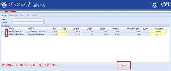 选择要缴费的费用项,点击“支付”,进入下图3的界面。