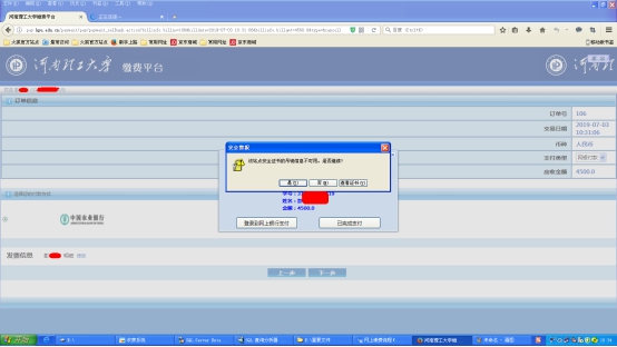 系统出现“银行扣款成功”的页面后,一般情况下5分钟之内可以看到相关费用项的已缴纳情况。若不确定是否交款成功,请先确认银行卡是否已经扣款,如果确认银行卡已经扣款,请不要再次点击银行“支付”,以免重复扣款。